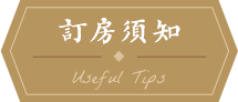| ※ | 住宿當日,如遇天災(颱風、地震),經當地政府或旅客所在地政府發布停止上班上課判定準則,可退還全額訂金或保留訂金。 |